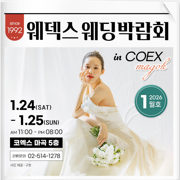 Since 1992, 35년동안 대한민국 대표 웨딩박람회를 주관해온 웨딩의 원조 "웨덱스웨딩. 코웨드웨딩" 예비부부 필수코스로 불리며 수많은 웨딩부부가 선택한 웨딩바람회의 노하우를 이제 마곡에서도 만나보세요.